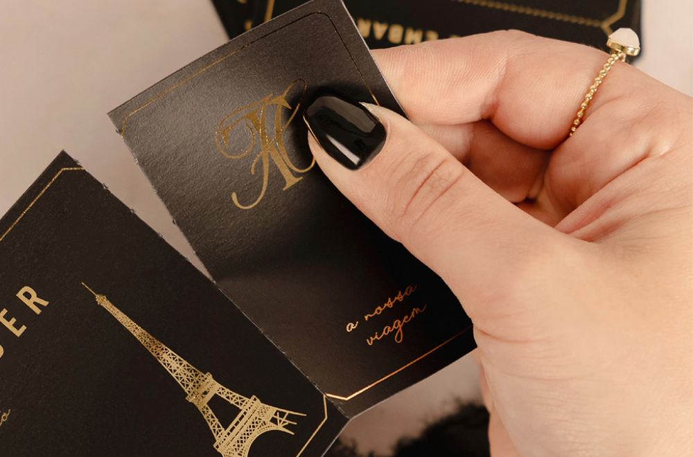 Por exemplo, se estivermos a falar de um casamento na praia, tens de garantir que elementos do oceano e da natureza não podem faltar no teu convite. Ou então, se vocês são um casal de viajantes aventureiros, podem ser criativos ao ponto de transformar o vosso convite de casamento numa espécie de bilhete de viagem, que neste caso, é a viagem do vosso amor.