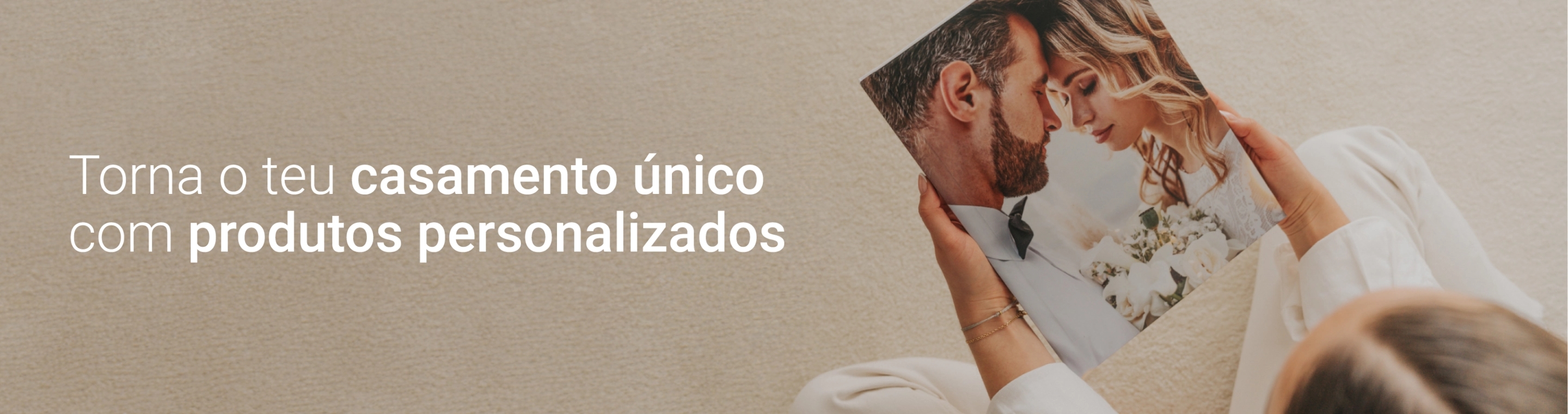 • Os álbuns para casamento também fazem parte e são ideais para guardar as melhores recordações e podem ser personalizados com diferentes tipos de capa, papel e acabamento. Se ainda não sabes como fazer um álbum de casamento, não te preocupes — o nosso editor online é simples e intuitivo. Assim que recebas as fotos da tua cerimónia, basta seleccionares o melhor de cada parte - dos preparativos, aos vossos convidados, passando claro pelo momentos do “Sim, Aceito”, até à grande festa, onde nunca se esquece a primeira dança ou corte do bolo.