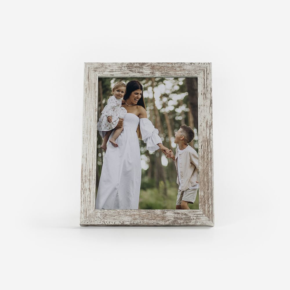 Moldura de alta qualidade, composta por uma estrutura em madeira com aspecto rústico, garantindo durabilidade e um acabamento perfeito para destacar as tuas fotos.