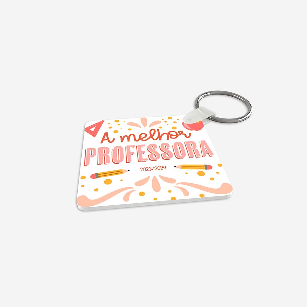 Produzido em acrílico resistente, este porta-chaves combina leveza e durabilidade. A personalização é feita por sublimação térmica nos dois lados, garantindo cores vivas e detalhes nítidos.